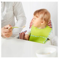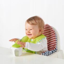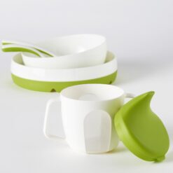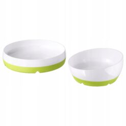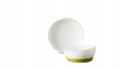 Szerokie, płaskie dno i powierzchnia antypoślizgowa utrzymują talerz i miskę w miejscu i ułatwiają dzieciom jedzenie. Zapobiega rozlewaniu i ułatwia małym dzieciom samodzielne jedzenie. Wysokie boki wygięte do środka sprawiają, że jedzenie pozostaje wewnątrz talerza.