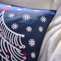 Poszewka poduszki świątecznej – granatowa ze wzorem w choinkę